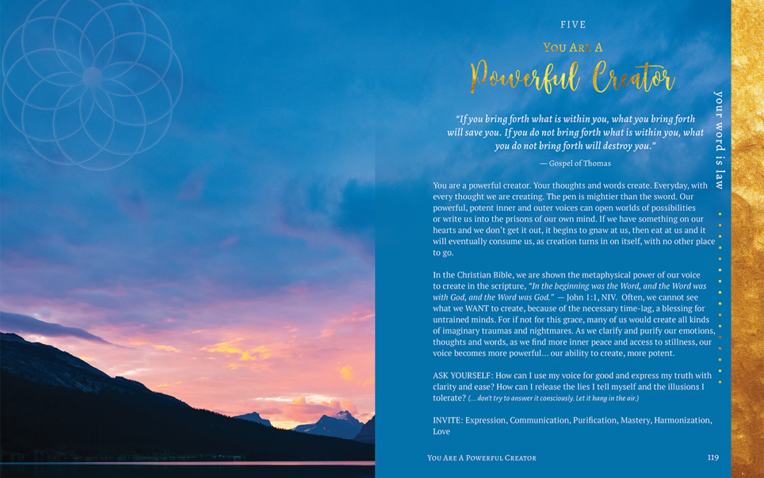 In the Christian Bible, we are shown the metaphysical power of our voice to create in the scripture, “In the beginning was the Word, and the Word was with God, and the Word was God.” — John 1:1, NIV. Often, we cannot see what we WANT to create, because of the necessary time-lag, a blessing for untrained minds. For if not for this grace, many of us would create all kinds of imaginary traumas and nightmares. As we clarify and purify our emotions, thoughts and words, as we find more inner peace and access to stillness, our voice becomes more powerful… our ability to create, more potent.