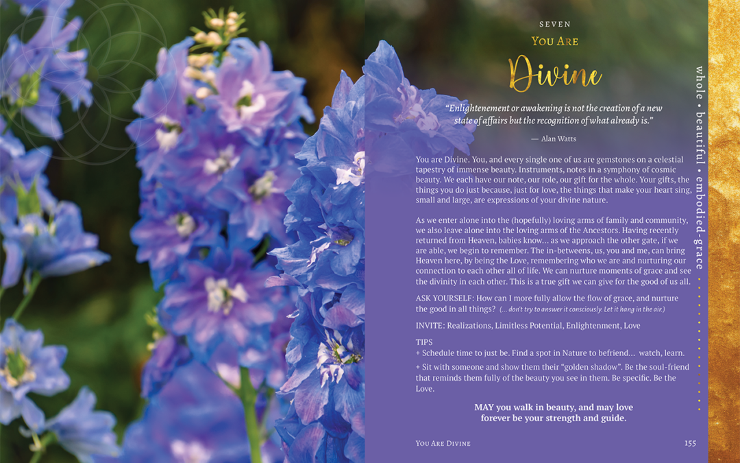 You are Divine. You, and every single one of us are gemstones on a celestial tapestry of immense beauty. Instruments, notes in a symphony of cosmic beauty. We each have our note, our role, our gift for the whole. Your gifts, the things you do just because, just for love, the things that make your heart sing, small and large, are expressions of your divine nature.