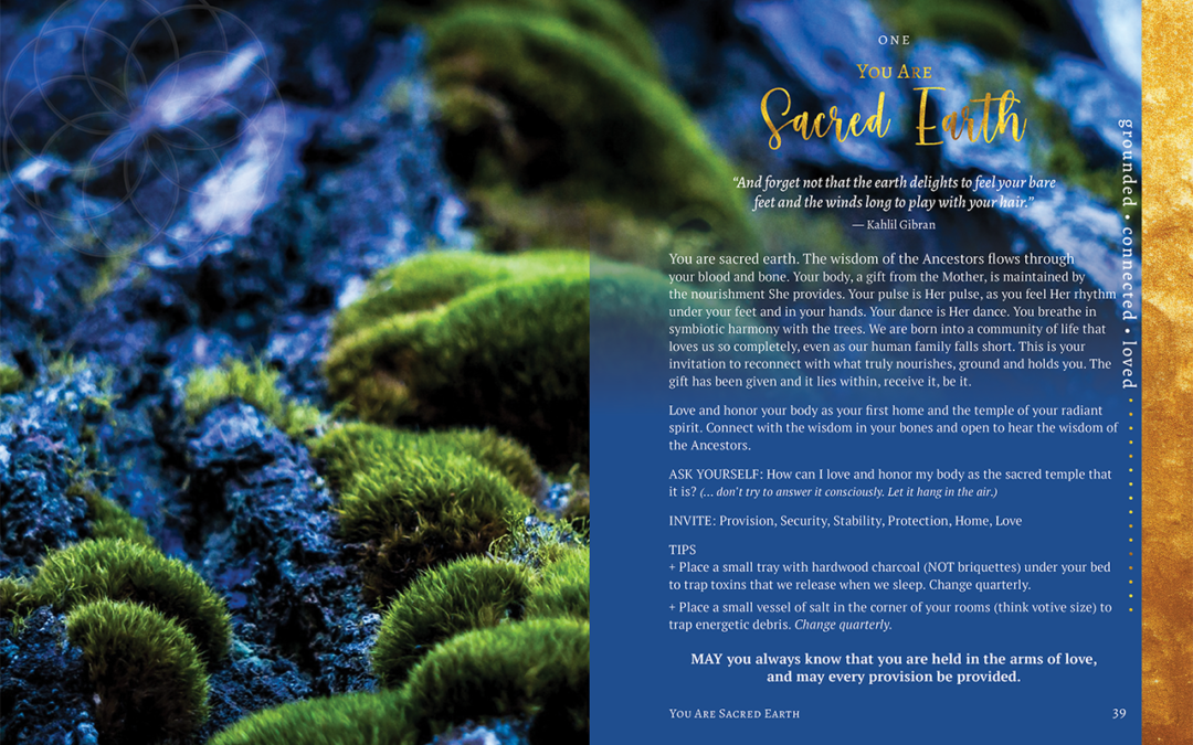 You are sacred earth. The wisdom of the Ancestors flows through your blood and bone. Your body, a gift from the Mother, is maintained by the nourishment She provides. Your pulse is Her pulse, as you feel Her rhythm under your feet and in your hands. Your dance is Her dance. You breathe in symbiotic harmony with the trees. We are born into a community of life that loves us so completely, even as our human family falls short. This is your invitation to reconnect with what truly nourishes, ground and holds you. The gift has been given and it lies within, receive it, be it.