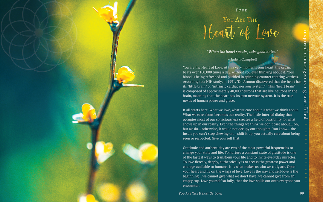 You are the Heart of Love. At this very moment, your heart, the organ, beats over 100,000 times a day, without you ever thinking about it. Your blood is being refreshed and purified in spinning counter rotating vortices. According to a NIH study, in 1991, “Dr. Armour discovered that the heart has its “little brain” or “intrinsic cardiac nervous system.”1 This “heart brain” is composed of approximately 40,000 neurons that are like neurons in the brain, meaning that the heart has its own nervous system. It is the true nexus of human power and grace.